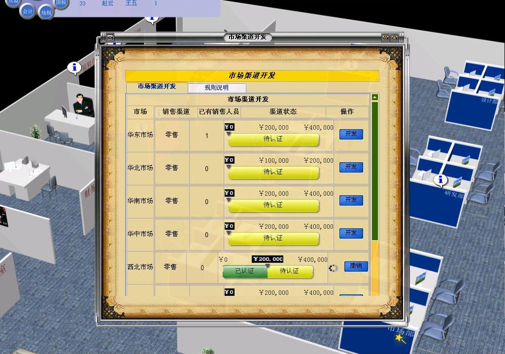 企业经营模拟实验室是以创业之星为教学支撑软件,以70台电脑为硬件的商科类专业实验室。该实验室的企业经营模拟软件-创业之星通过对真实企业的仿真模拟,让学生在虚拟的商业环境中体验真实的创业管理过程。学生先组建虚拟企业,每名成员分别担任虚拟企业的总经理、财务总监、营销总监、生产总监、研发总监、人力资源总监等岗位,并承担相关的管理工作。团队成员通过对市场环境与背景资料的分析讨论,完成企业运营过程中的各项决策,包括战略规划、品牌设计、营销策略、市场开发、产品计划、生产规划、融资策略、成本分析等。团队成员努力实现虚拟企业既定的战略目标,并在所有企业中脱颖而出。